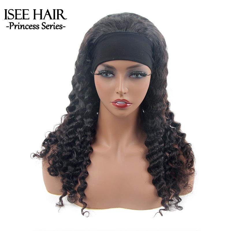 Deep Curly Headband Wig Human Hair Glueless Wig | ISEE HAIR