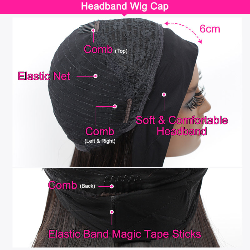 Straight Headband Wig Unprocessed Human Hair Glueless Wig | ISEE HAIR